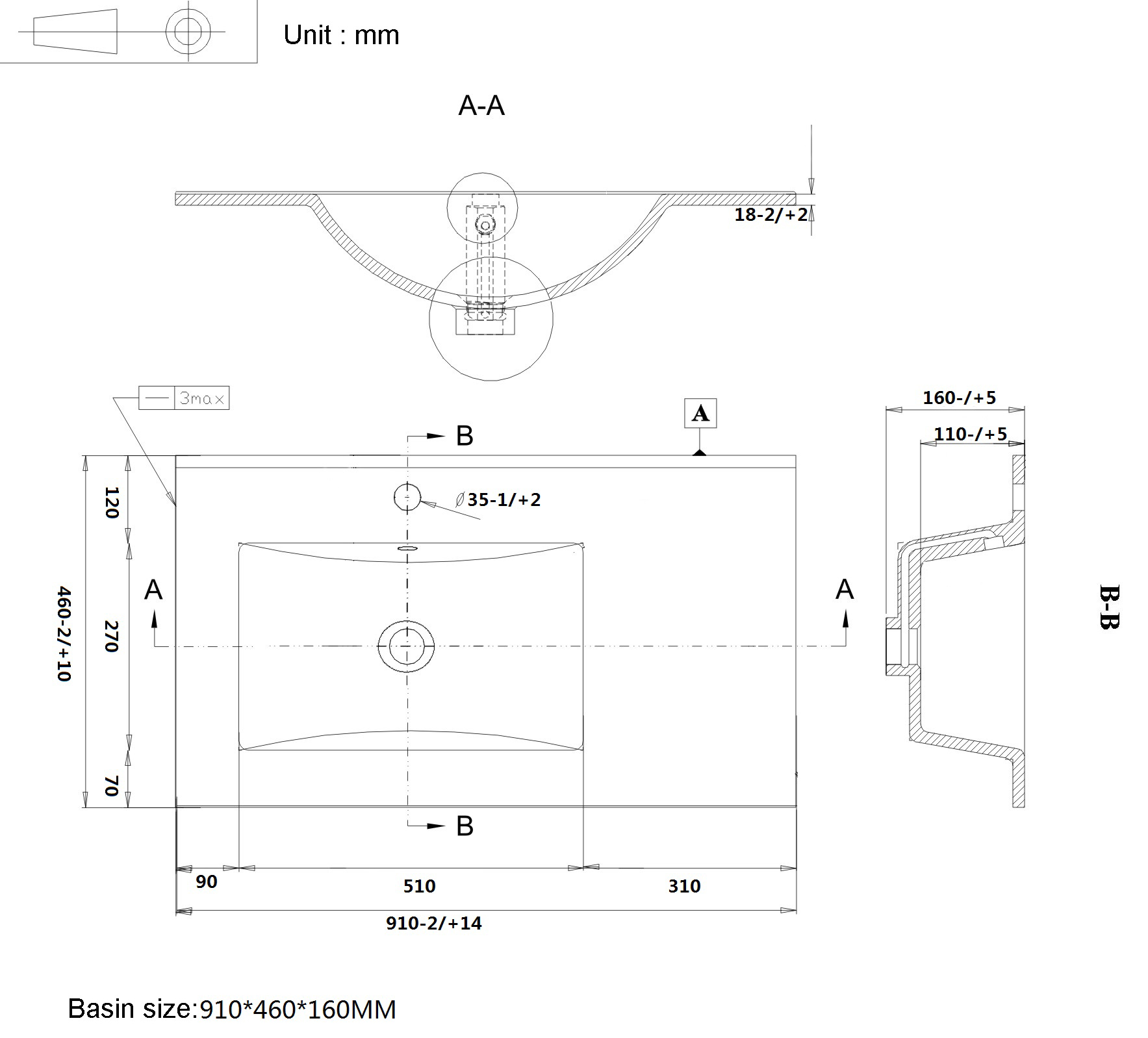 - Размер (ШхДхВ): 91 x 46 х 16 см. Глубина чаши: 11 см.