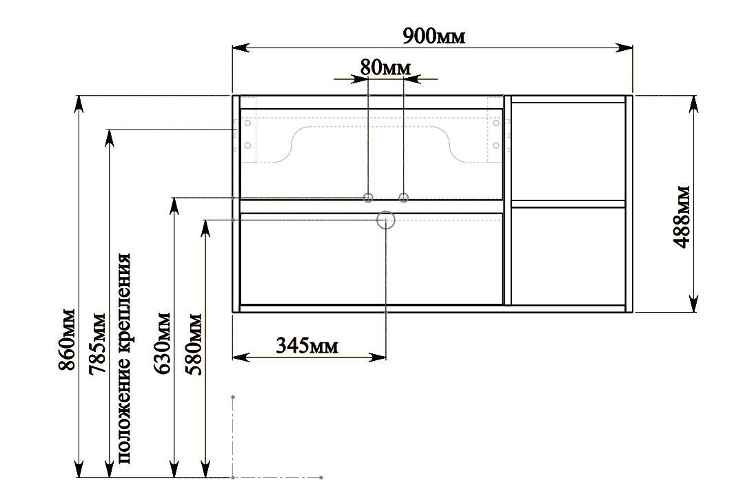 - Две открытые полки справа.
