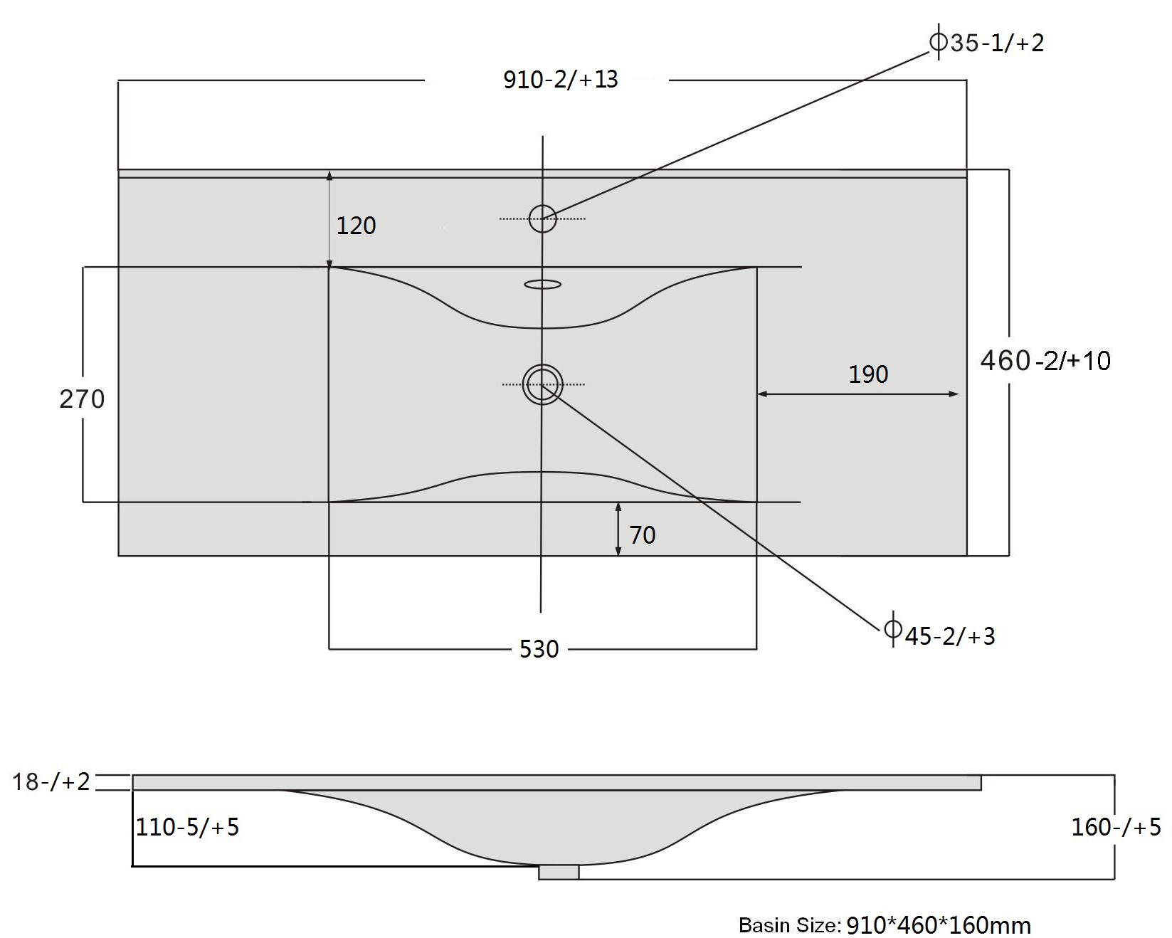 - Размер (ШхДхВ): 91 x 46 х 16 см. Глубина чаши: 11 см.
