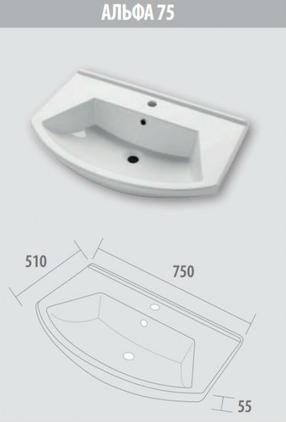 - Раковина Dreja Альфа 75: