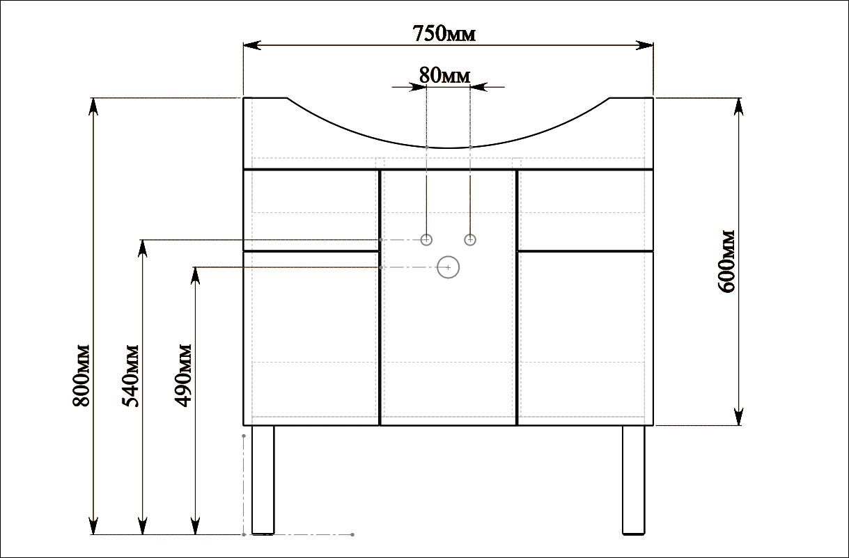В комплекте поставки: тумба, раковина, ножки (2 шт.).