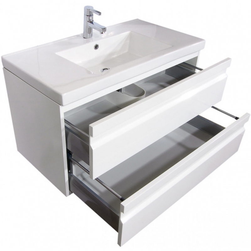 Тумба с раковиной SanVit Тема 75 подвесная Белый глянец