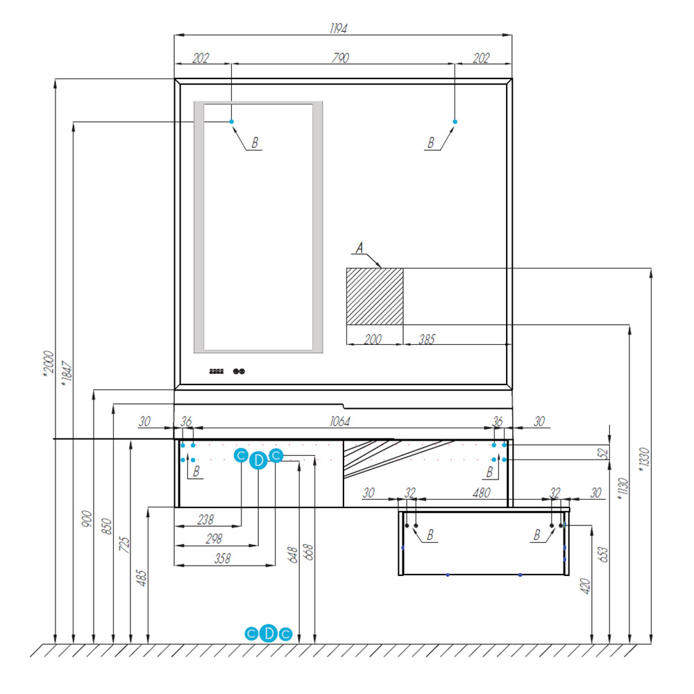 - Зеркальное полотно с подсветкой и сенсором на экране.