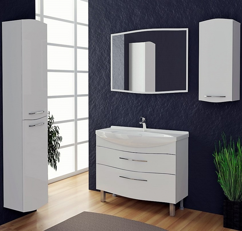 Дизайн: современный стиль, безупречная белая лаковая поверхность фасада, плавные линии фасадов и зеркал в форме волны и механизмы плавного закрывания с доводчиками дополняют картину умиротворенности и спокойствия.