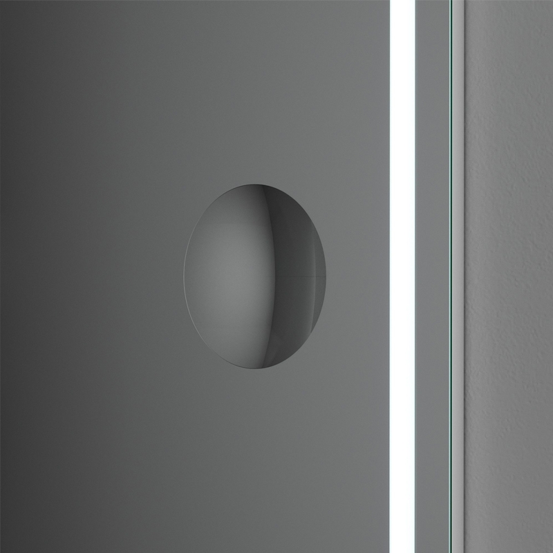 - Скрытый механический выключатель сохраняет эстетическую целостность дизайна зеркала, а также гарантирует отсутствие отпечатков пальцев на зеркальном полотне.