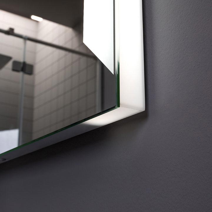 Покрытие зеркала Акванет Sorrento - зеркальная амальгама высокого качества. Два участка трапециевидной формы с двух боковых сторон зеркала покрытия не имеют. Свет проходит изнутри через боковые стороны зеркала и участки, не имеющие амальгамового покрытия, благодаря чему подсветка образует оригинальную светящуюся рамку вокруг зеркала.