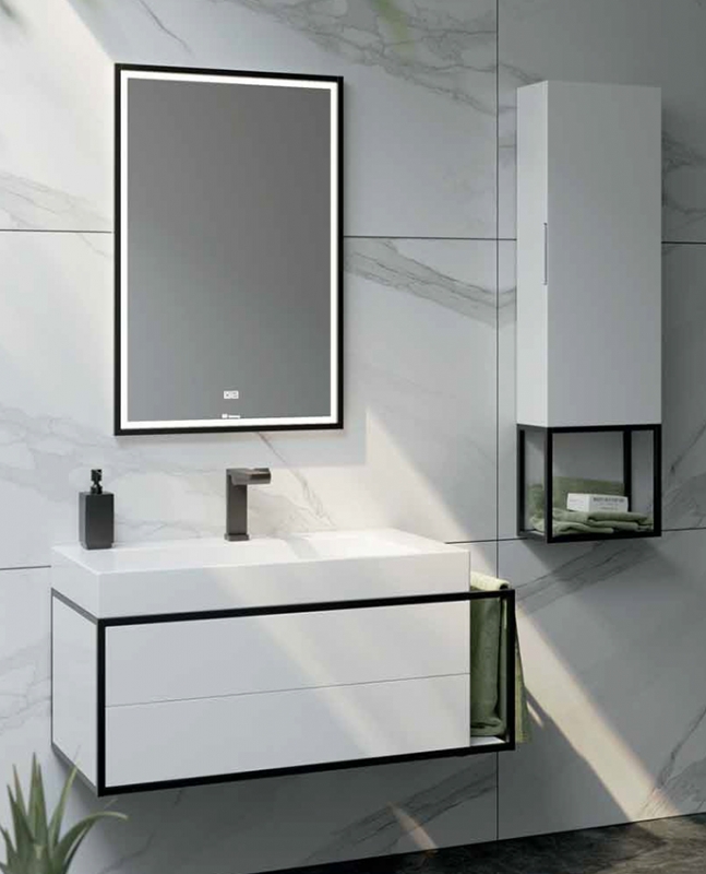 Зеркало Aqwella Clarberg Logiс 60 LOG0206 со светодиодной подсветкой, системой обогрева для защиты от запотевания и двумя сенсорными выключателями. Главная особенность коллекции - это применение алюминиевого анодированного профиля в чёрном цвете.
