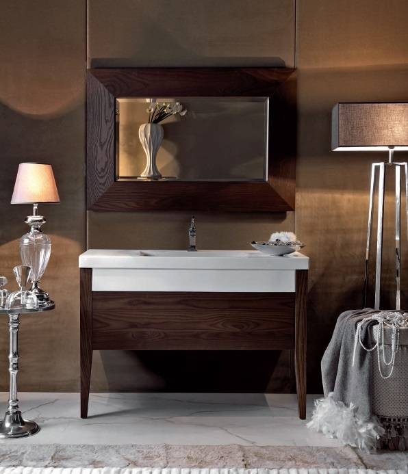 Подвесное прямоугольное зеркало в широкой раме Kerasan Bentley Specchio 918047 Frassino scuro 100x80 или 80x100. Предназначено для использования в ванных комнатах с повышенной влажностью.