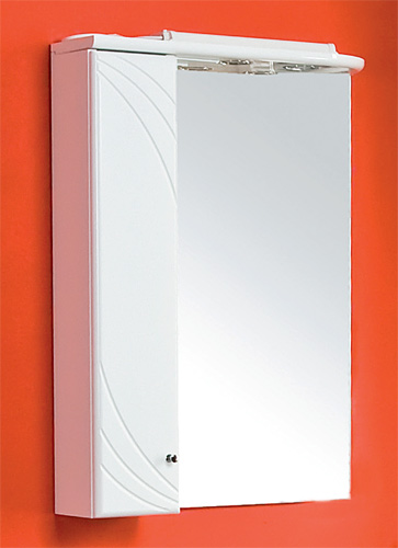 Зеркало со шкафом Акватон 1A013202PT01L Пинта М подвесное. Левое исполнение, пенал слева. Корпус из влагостойкого ДСП, зеркальный фасад, встроенная подсветка.