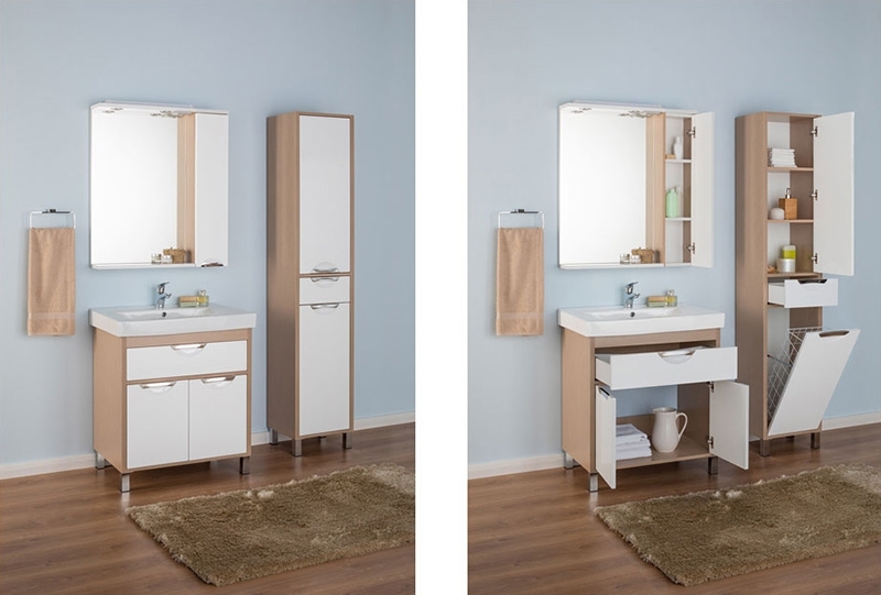 - зеркало с подсветкой, шкафчиком и нижней открытой полкой.