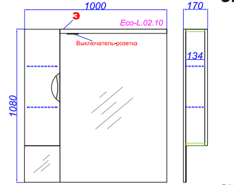 Зеркало со шкафом Aqwella Эколайн 100 Eco-L.02.10 имеет превосходный классический дизайн, великолепно сочетающийся в современном интерьере ванных комнат. Зеркальная панель оснащена встроенной светодиодной подсветкой с выключателем и розеткой.