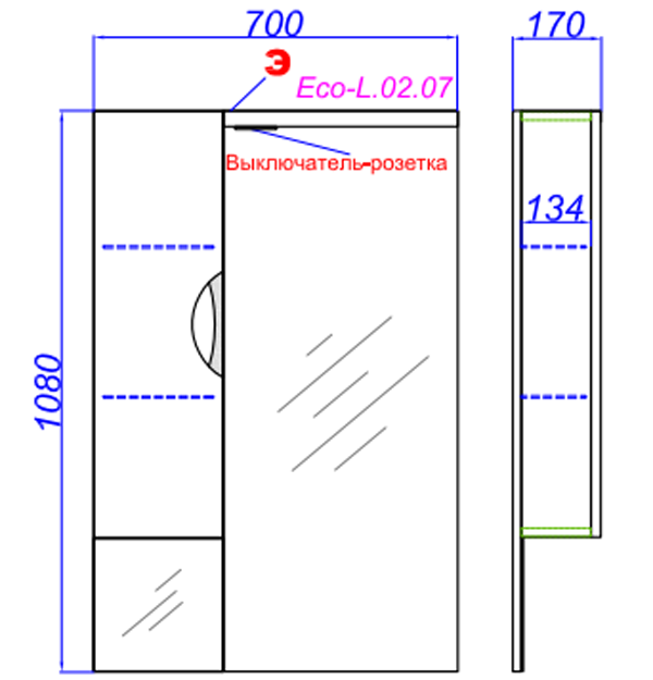 Зеркало со шкафом Aqwella Эколайн 70 Eco-L.02.07 имеет превосходный классический дизайн, великолепно сочетающийся в современном интерьере ванных комнат. Зеркальная панель оснащена встроенной светодиодной подсветкой с выключателем и розеткой.