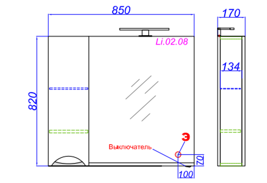 Зеркало со шкафом Aqwella Лайн 85 Li.02.08 имеет превосходный минималистичный дизайн, великолепно сочетающийся в современном интерьере ванных комнат. Зеркало оснащено полочкой, шкафчиком, светодиодным светильником и выключателем.