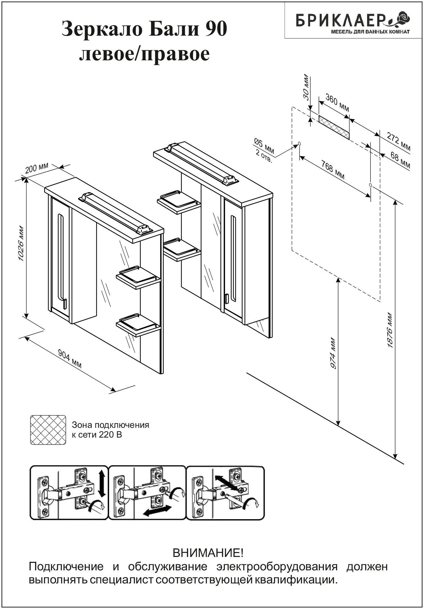 С подсветкой, с розеткой, с выключателем, с полкой, со шкафом |