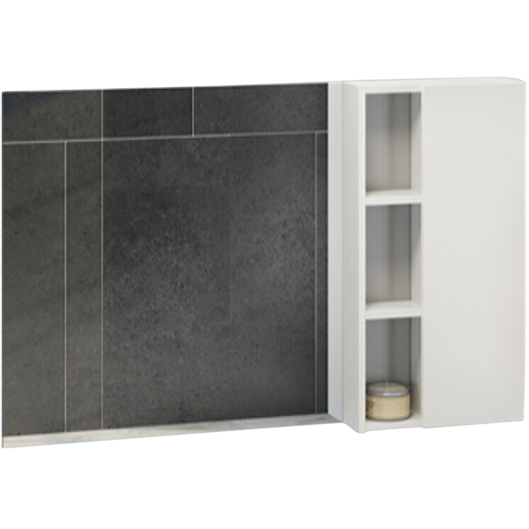 - Зеркальное высококачественное полотно с амальгамой на основе серебра. Створка мебельного элемента оснащена петлями с плавным закрыванием. За дверцей одна горизонтальная полка.