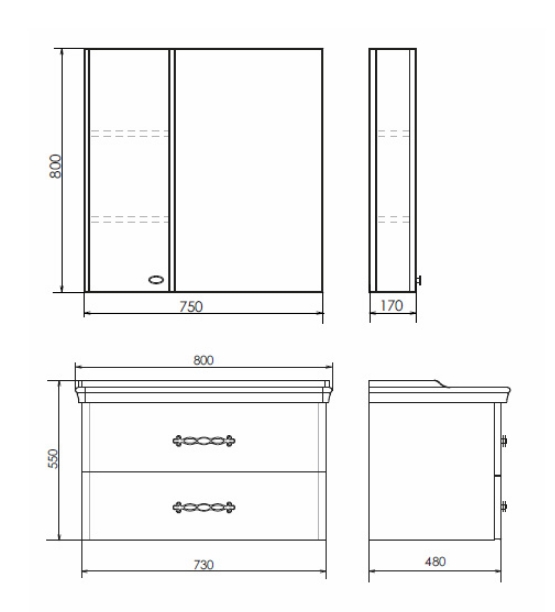- Габариты (ШхВхГ): 800*750*170 мм.