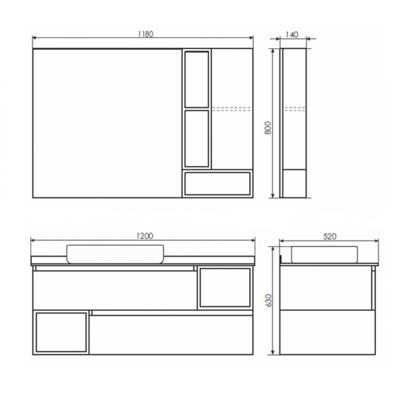 - Габариты корпуса шкафа (ШхВхГ): 80 х 118 х 14 см.
