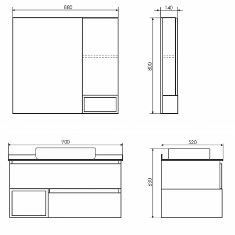 - Габариты корпуса шкафа (ШхВхГ): 80 х 88 х 14 см.