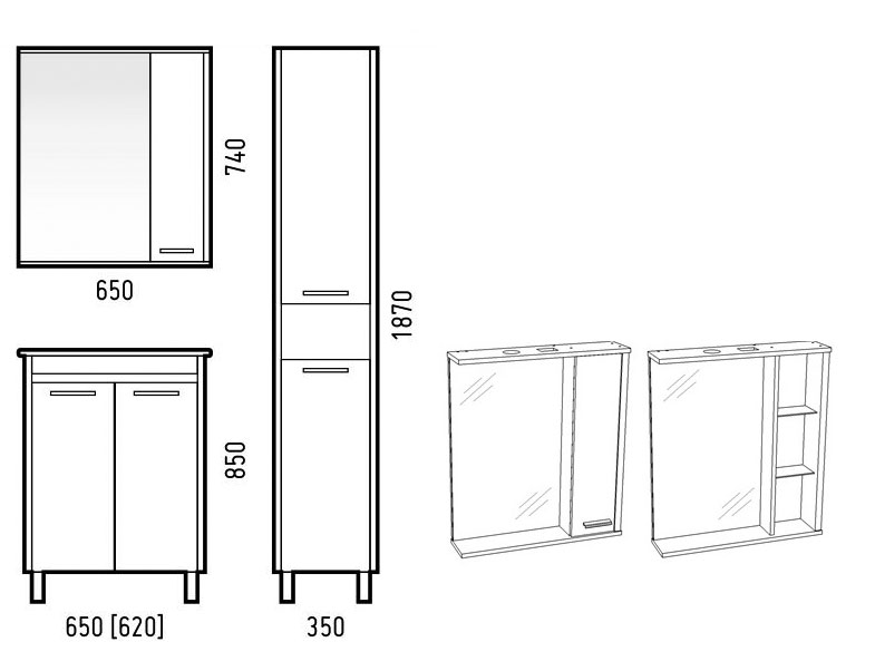 - Материал фасада: МДФ, зеркало.