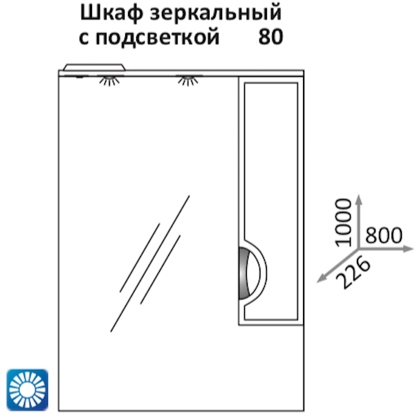 - Габариты, мм (Ш х В x Г): 800 х 1000 х 226