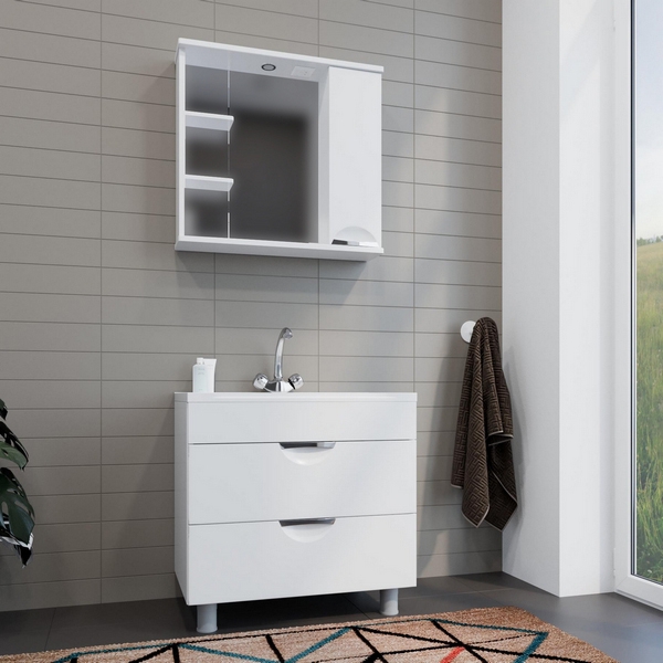 Зеркало со шкафом Mixline Этьен 75 R 529941 с подсветкой Белое