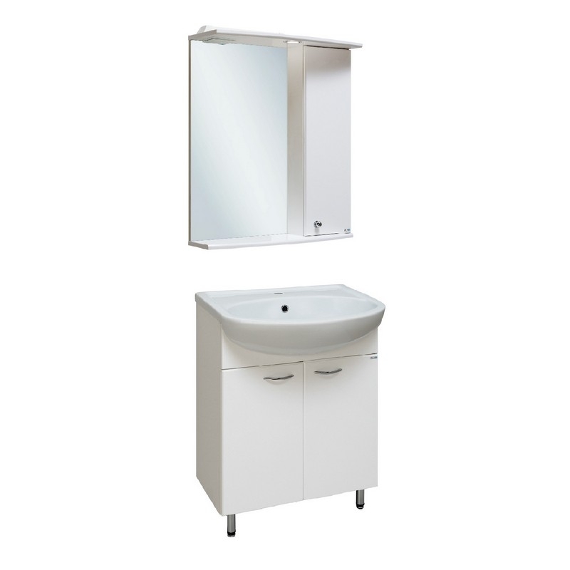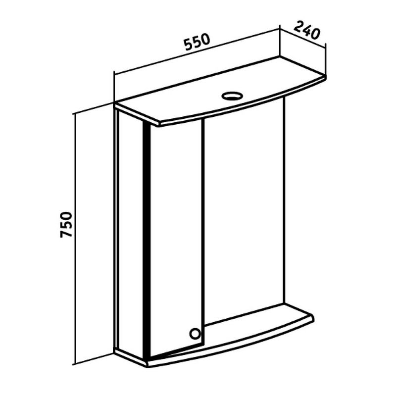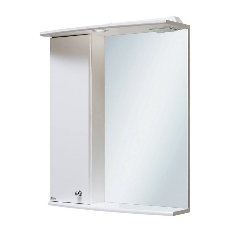 Зеркало со шкафом Runo Ирис оборудовано одним врезным светодиодным светильником 220В и розеткой с выключателем. Слева - шкафчик с распашным фасадом и двумя внутренними полками. Петли со встроенным доводчиком Характеристики: