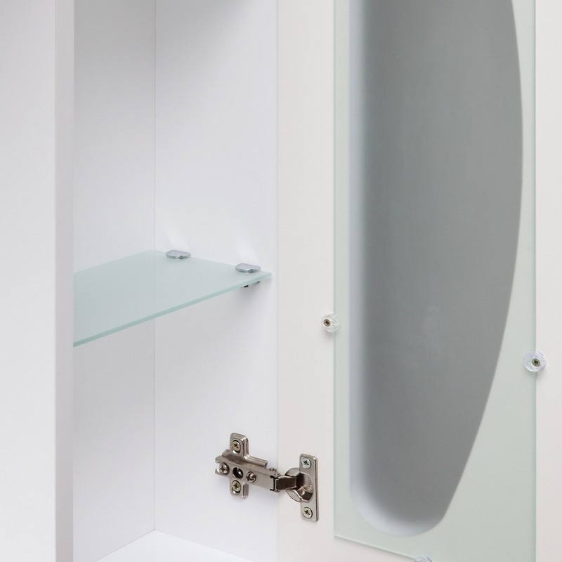 Зеркало со шкафом Runo Линда Люкс оборудовано одним врезным светодиодным светильником 220В и розеткой с выключателем. Справа - шкафчик с распашным фасадом со стеклянной вставкой. Внутри - две стеклянные полки. Петли со встроенным доводчиком Характеристики: