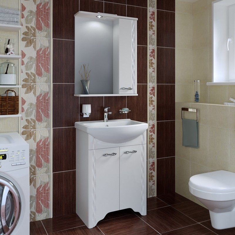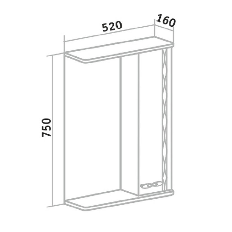 Зеркало со шкафом Runo Лотос оборудовано одним врезным светодиодным светильником 220В и розеткой с выключателем. Справа - шкафчик с распашным фасадом и двумя внутренними полками. На фасаде вертикальная 3D-фрезеровка. Петли со встроенным доводчиком, ручка фигурная - 1шт. Характеристики: