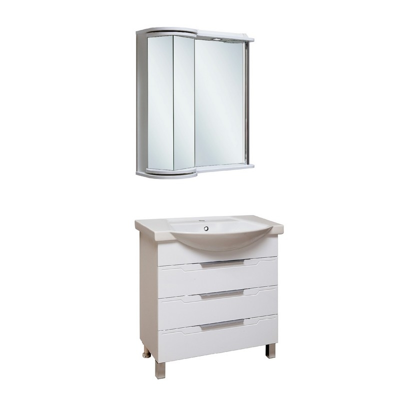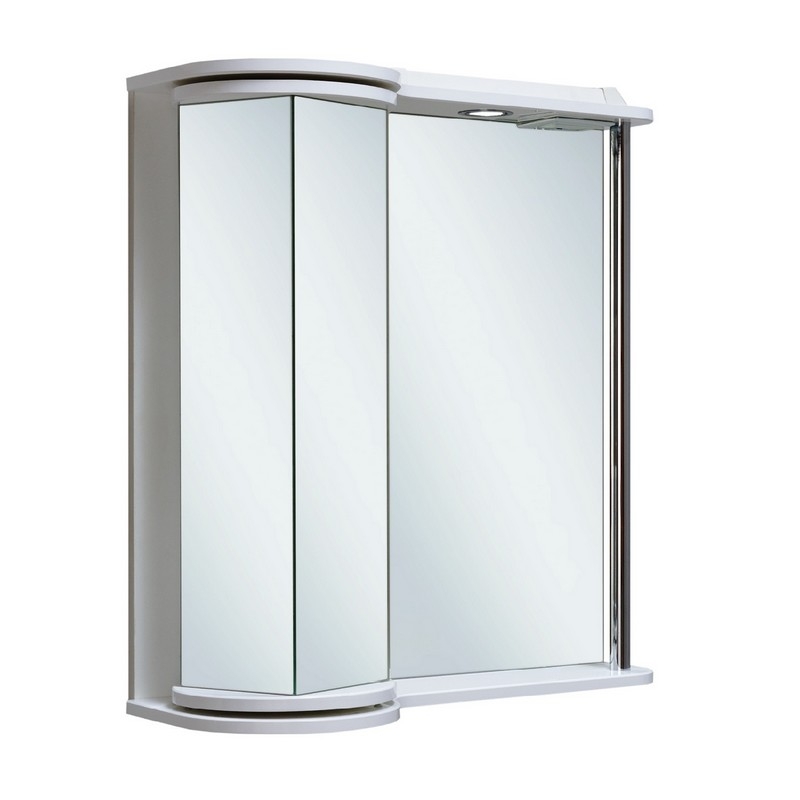 Зеркало со шкафом Runo Секрет оборудовано одним светодиодным светильником и розеткой с выключателем. Слева - три открытые полочки с декоративными рейлингами, расположенные на крутящемся основании, справа - вертикальная Хромированная труба. Характеристики: