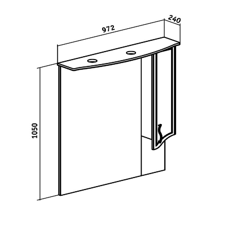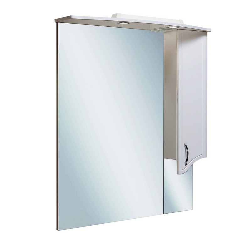 Зеркало со шкафом Runo Севилья оборудовано двумя врезными светильниками 220В и розеткой с выключателем. Справа - шкафчик с распашным фасадом и двумя внутренними полками. Петли со встроенным доводчиком Характеристики: