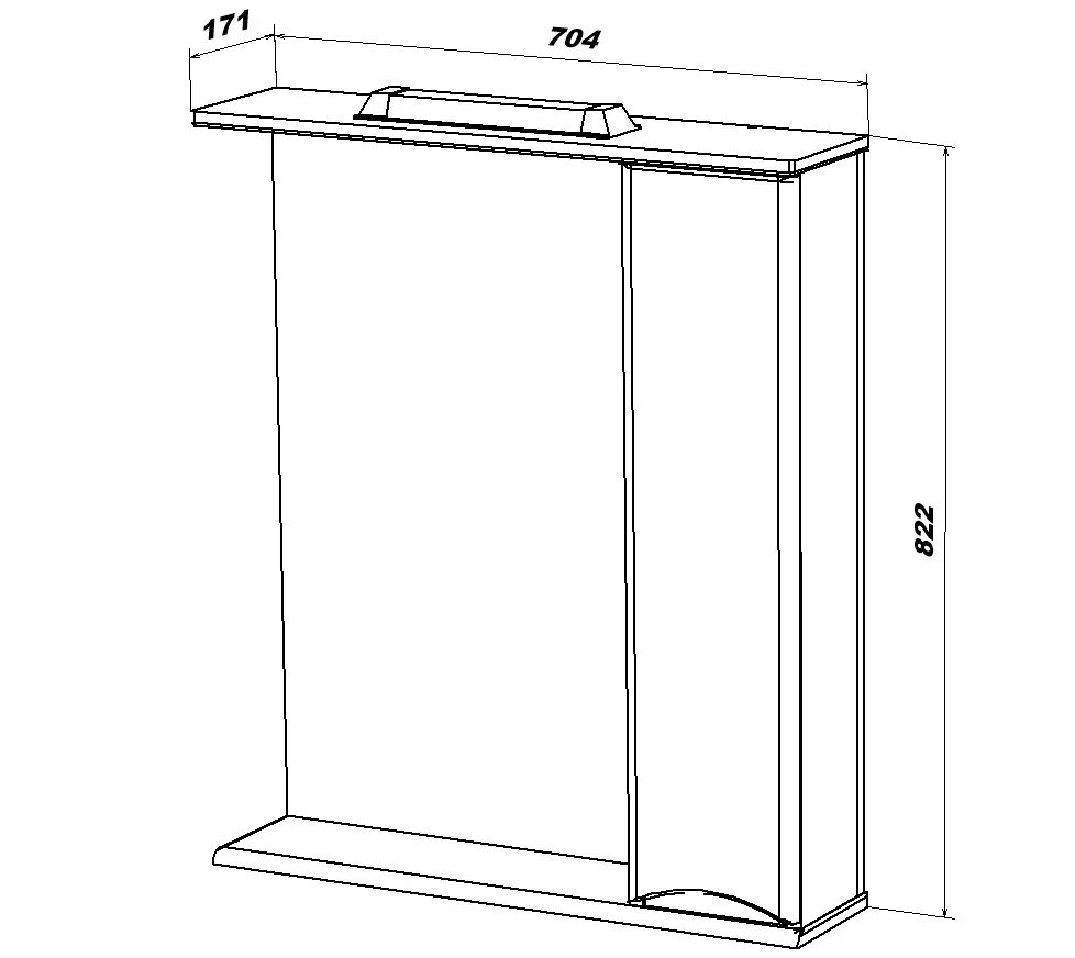 - Распашная дверца с механизмом доводчика. Внутри 2 полки.