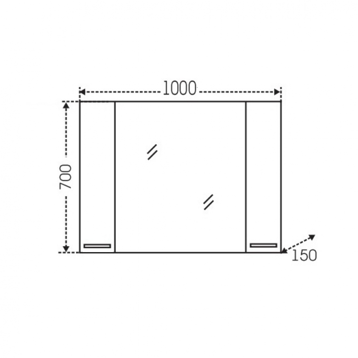 - Одна дверца с двойным зеркалом на петлях с доводчиками для плавного и бесшумного открытия и закрытия.