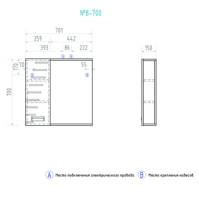 С подсветкой, с розеткой, с выключателем, с полкой, со шкафом |