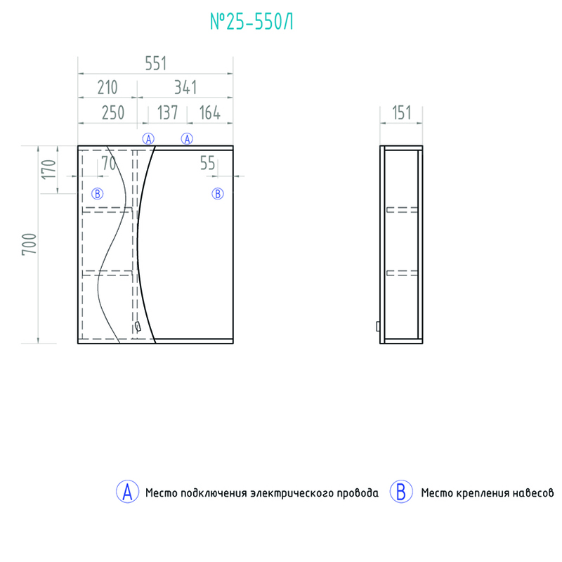 Зеркало со шкафом Vigo Faina 55 левое с подсветкой.