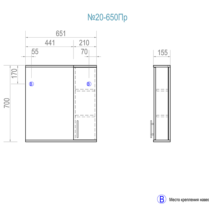 Зеркало со шкафом Vigo Vito 65 правое с подсветкой.