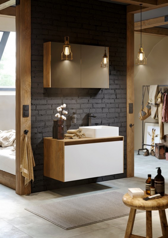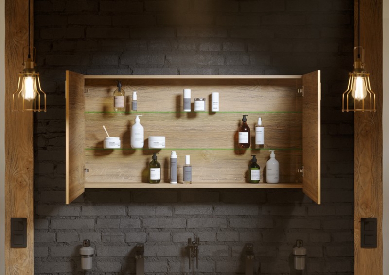 - Зеркальный шкаф оснащен широкими стеклянными полками, что позволяет максимально использовать внутреннее пространство.