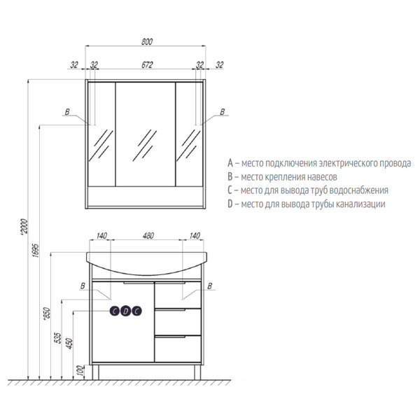 Мебель не боится влажности и устойчива к бытовой химии. Практична и проста в уходе.