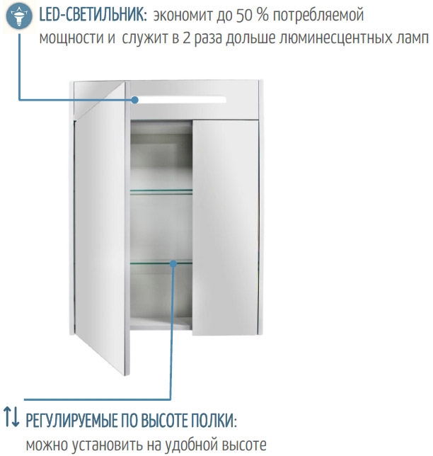 Зеркальный шкаф Акватон Сильва 60 1A216202SIW50.