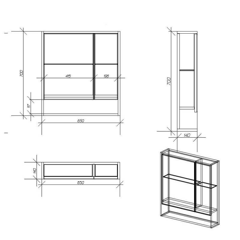 - Габариты (ШxВxГ): 650x700x140 мм.
