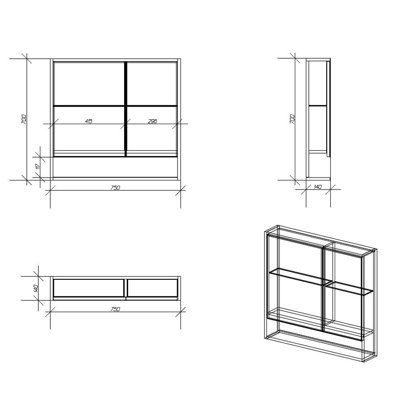- Габариты (ШxВxГ): 750x700x140 мм.