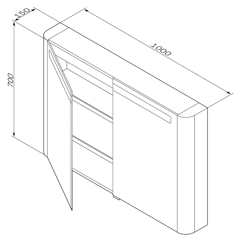 Зеркальный шкаф в ванную AM.PM Sensation 100 M30MCX1001BG с двумя распашными дверцами и двумя полками за ними, с подсветкой сверху, с розеткой и выключателем.
