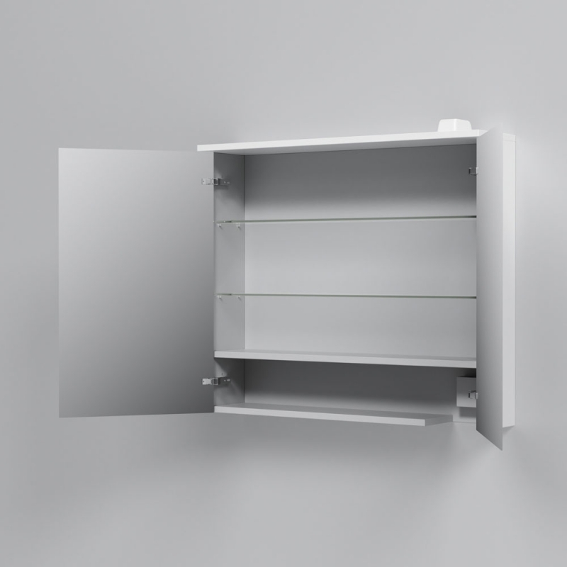 AM.PM Spirit V2.0 81 (M70AMCX0801WG) - шкаф с двумя зеркальными дверцами. Отличается приятным дизайном, а также практичностью и функциональностью. Особенность в виде внутренней LED подсветки добавляет освещенности во время использования различных принадлежностей. Функция открывания двери одним нажатием push-to-open избавляет от выступающих частей в виде ручек. Наличие доводчиков в дверцах делает закрывание и открывание мягким.