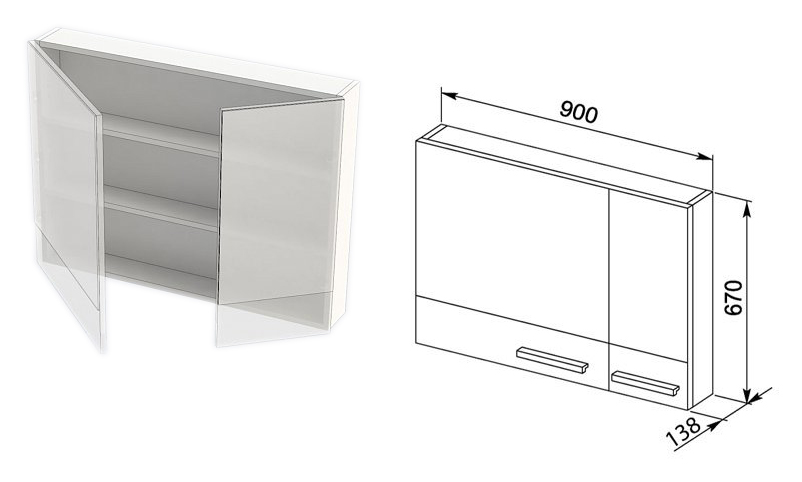 - Отделения: 2 распашные дверцы, полки.