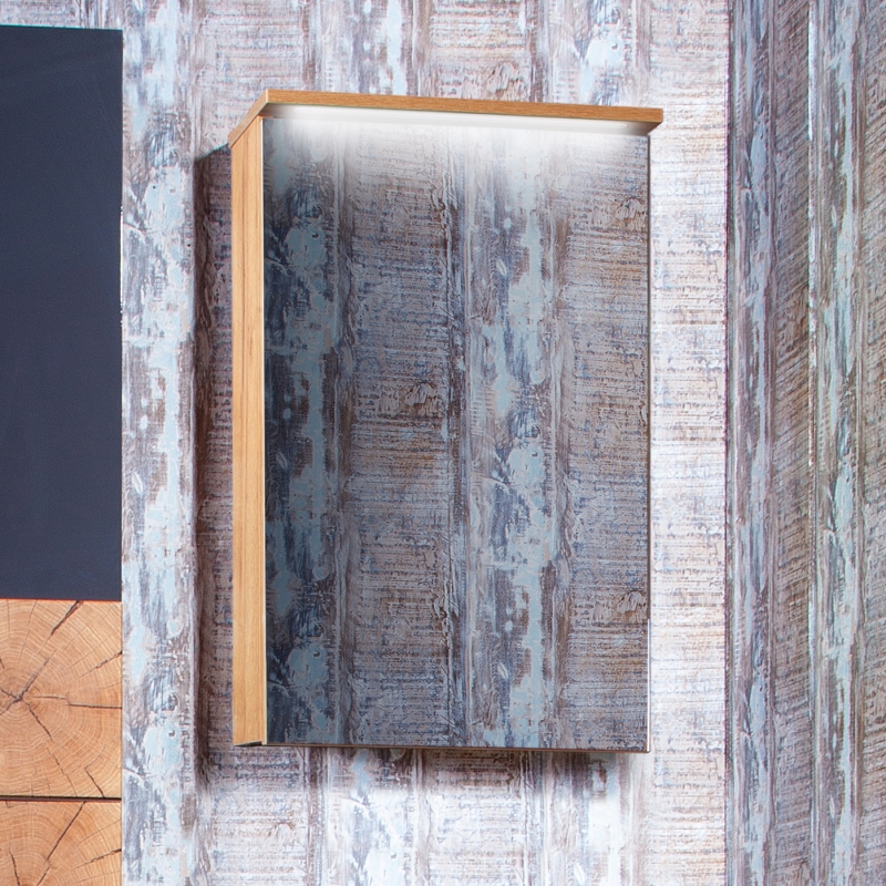Зеркальный шкаф Бриклаер Форест 50 с подсветкой Антрацит со вставкой Пенёк