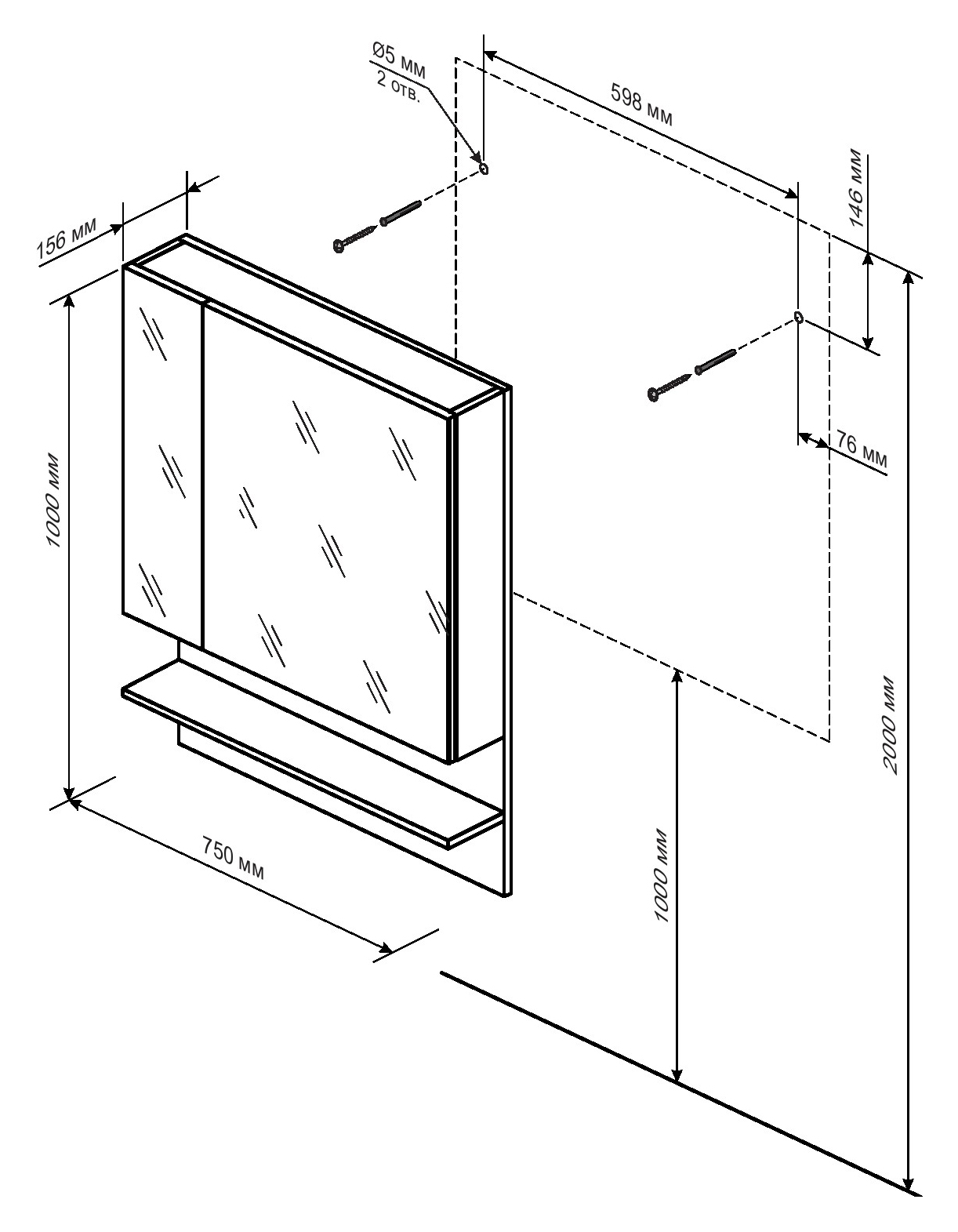 Зеркальный шкаф Бриклаер Карибы 75 с открытой полкой и двумя распашными дверцами выполнен в современном стиле, сочетает в себе элегантность и практичность. Шкаф устойчив к воздействию повышенной влаги и отлично впишется в интерьер любой ванной комнаты