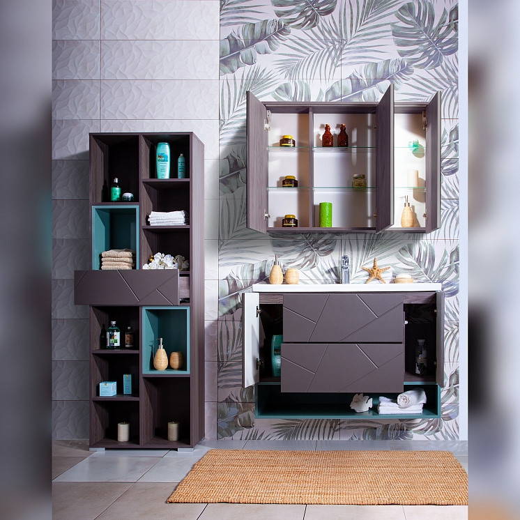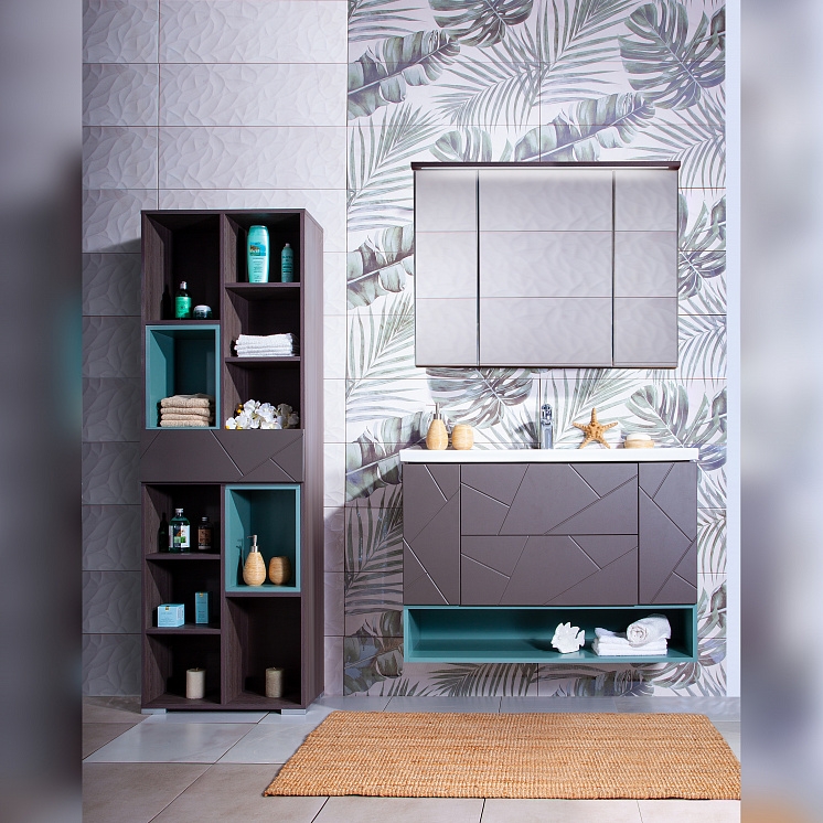 Трендовый дизайн комплекта мебели для ванной Кристалл не может оставить равнодушным даже самую изысканную натуру. Гармоничное сочетание серого и голубого цветов.