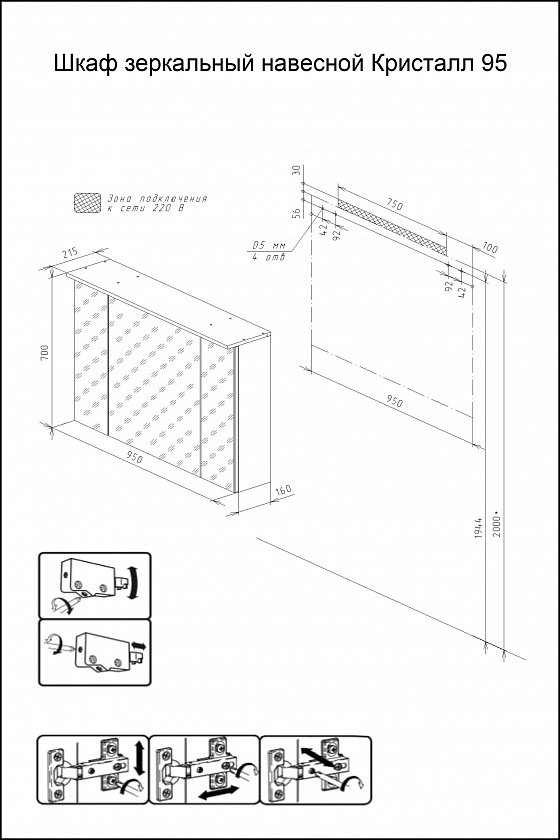 Зеркальный шкаф Бриклаер Кристалл 95 с подсветкой.