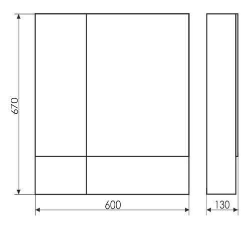 - Габариты корпуса шкафа (ШхВхГ): 67 х 60 х 13 см.