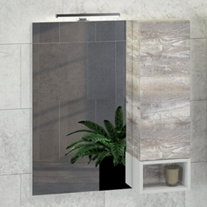 Навесной зеркальный шкаф, имеет место для хранения ванных принадлежностей, удобно умещает их в себе. Станет главным украшением вашей ванной комнаты. Выполнен из материалов, соответствующих всем требованиям экологичности и безопасности, устойчив к коррозии, повышенной влажности и перепадам температур. По дизайну подходит для большинства ванных в современном стиле. Исправно прослужит на протяжении всего срока эксплуатации. Использовано зеркальное полотно высокого качества с амальгамой на основе серебра.