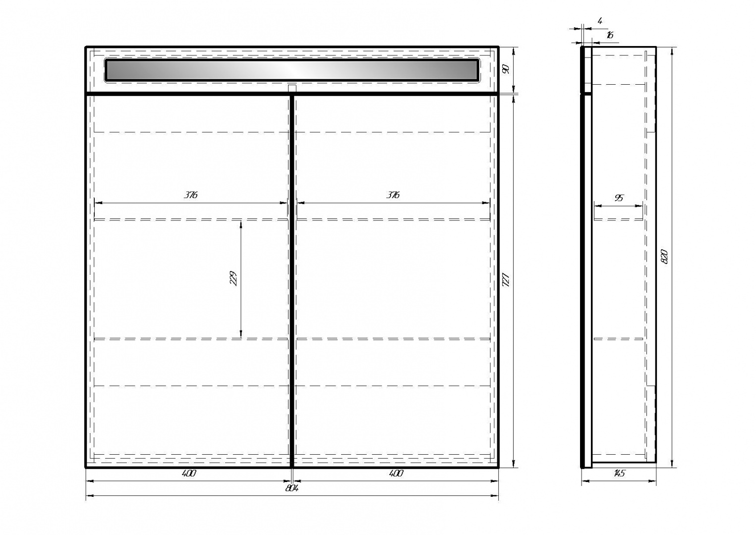 - Габариты корпуса шкафа (ШхВхГ): 80 х 82 х 14,5 см.